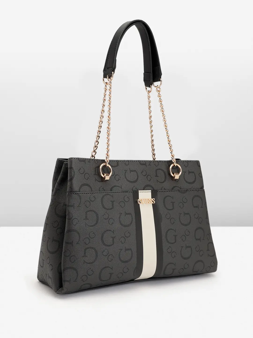 Guess-Printed Structured Shoulder Bag